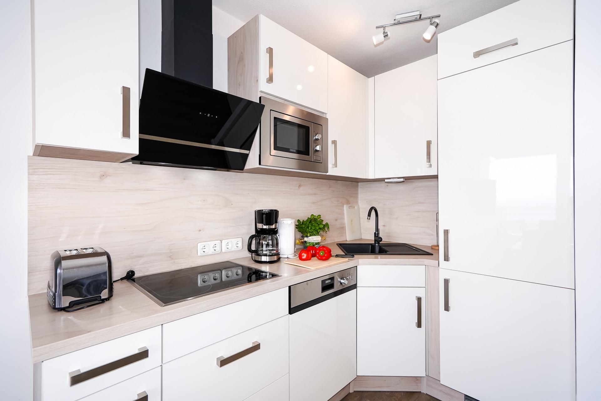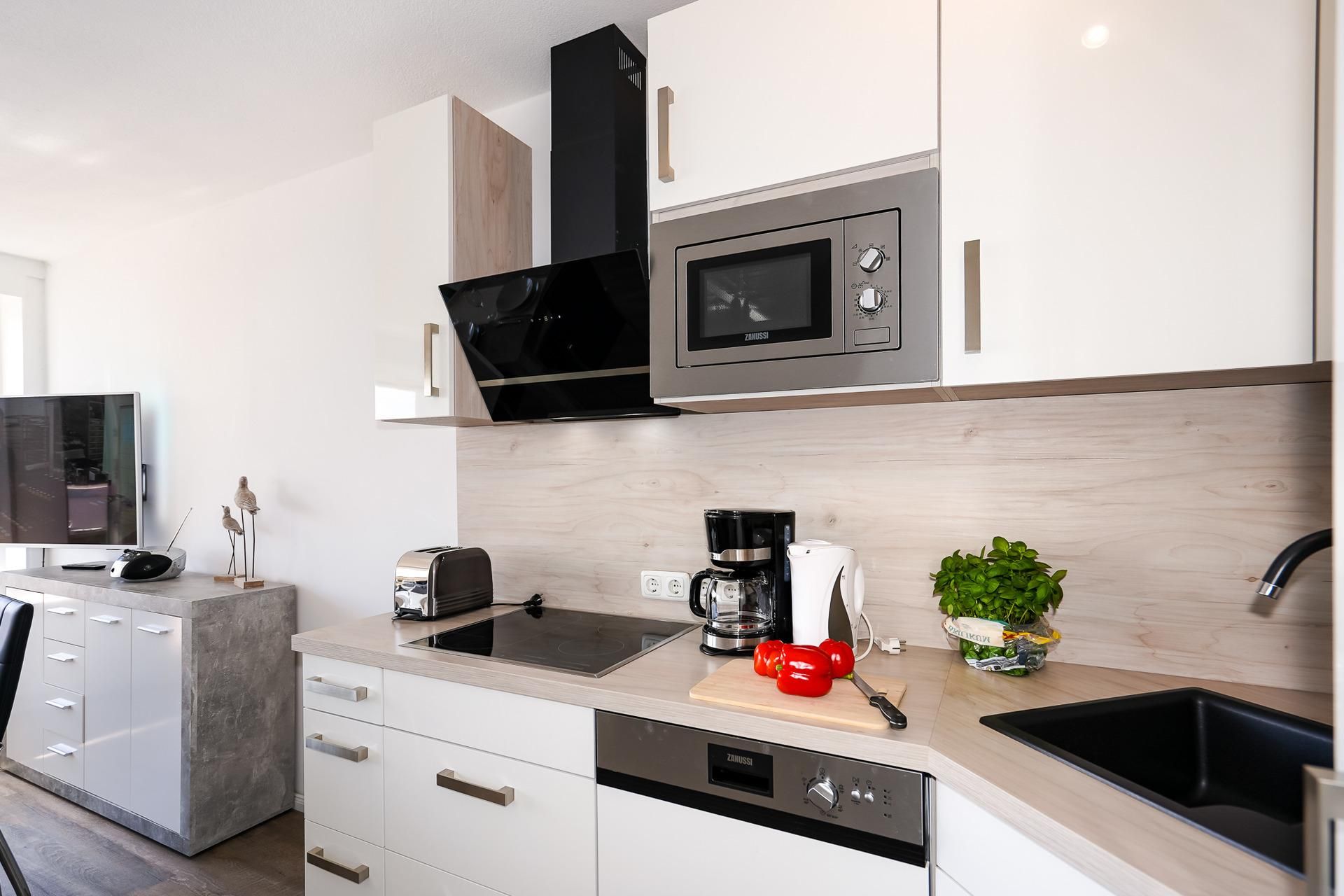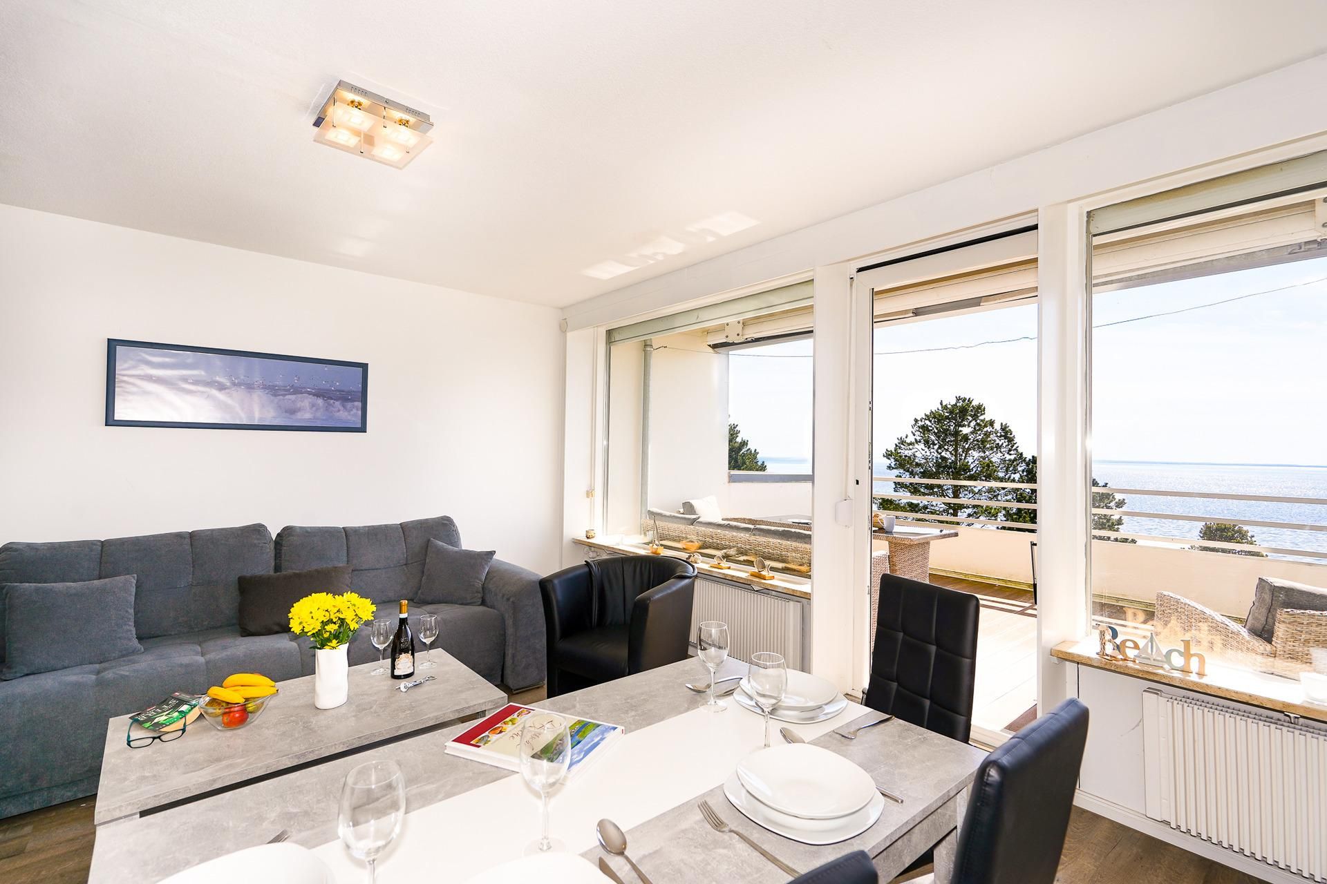 Das gepflegte und ruhig gelegene Apartment hat eine Größe von etwa 40 Quadratmetern und bietet 4 Urlaubsgästen Platz. Der Wohnraum verfügt über einen Essbereich sowie über eine offene Küche. Von der bequemen Polsterlandschaft (Schlafsofa) aus kann die Lieblingsserie auf einem großen Flachbildfernseher verfolgt werden. Der offene Schlafbereich ist mit einem bequemen...