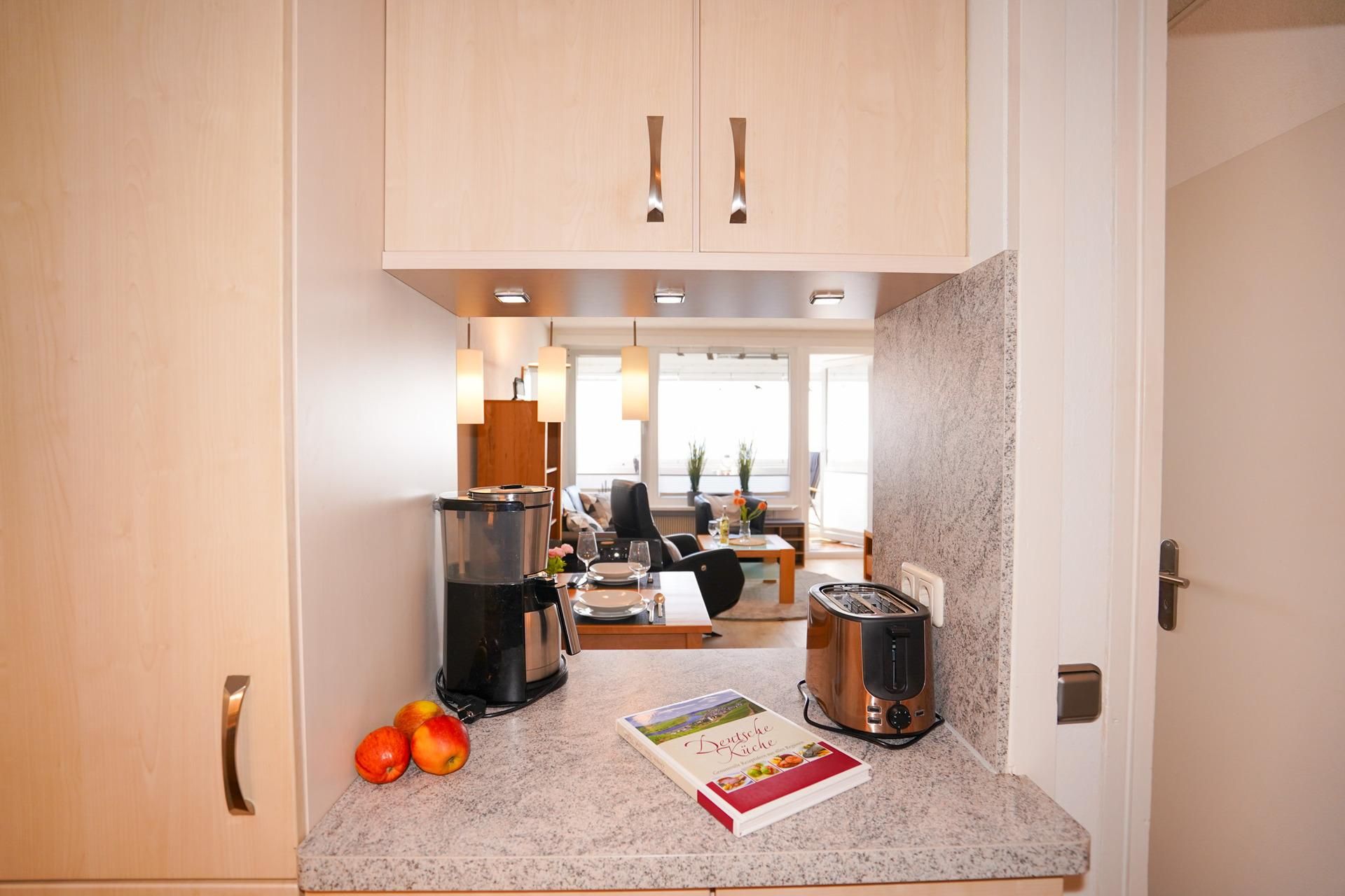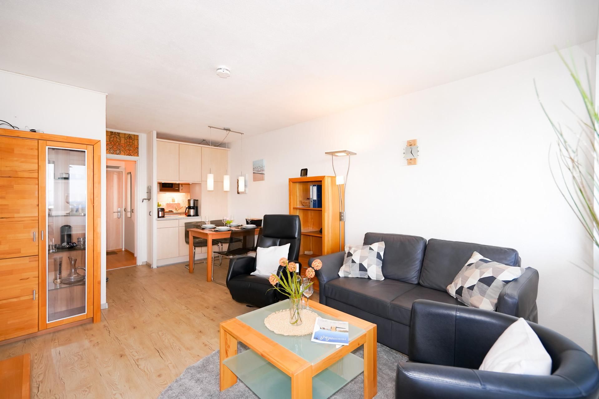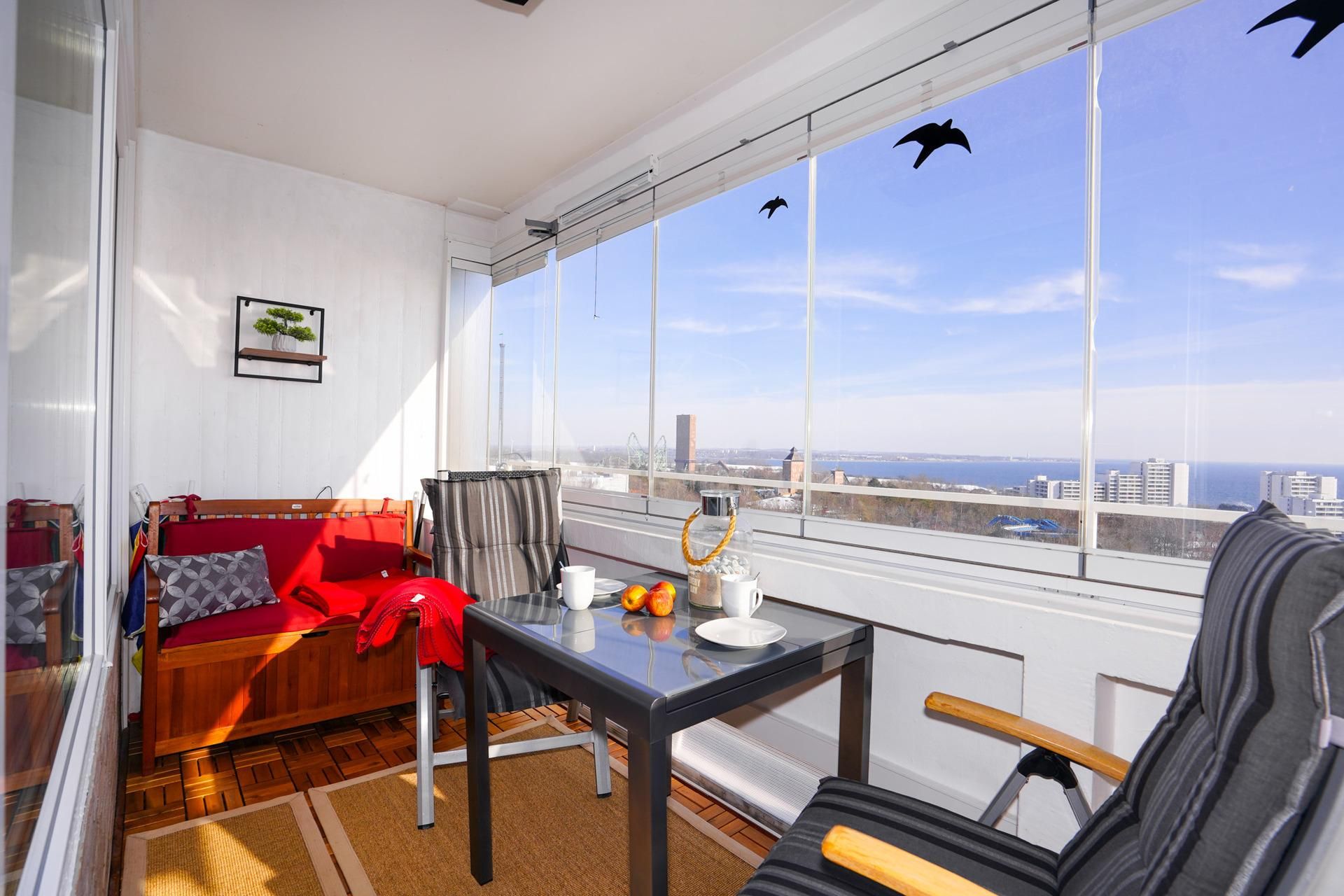 Schönes 42 qm Apartment im 9. Stock mit Ausrichtung zur Ostsee mit traumhaftem Meerblick auf die Lübecker Bucht. Die Ferienwohnung ist gut ausgestattet mit einer hochwertigen Ledergarnitur und zwei passenden Sesseln, einem verglasten Balkon (teilweise oder komplett...