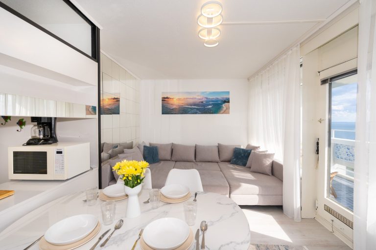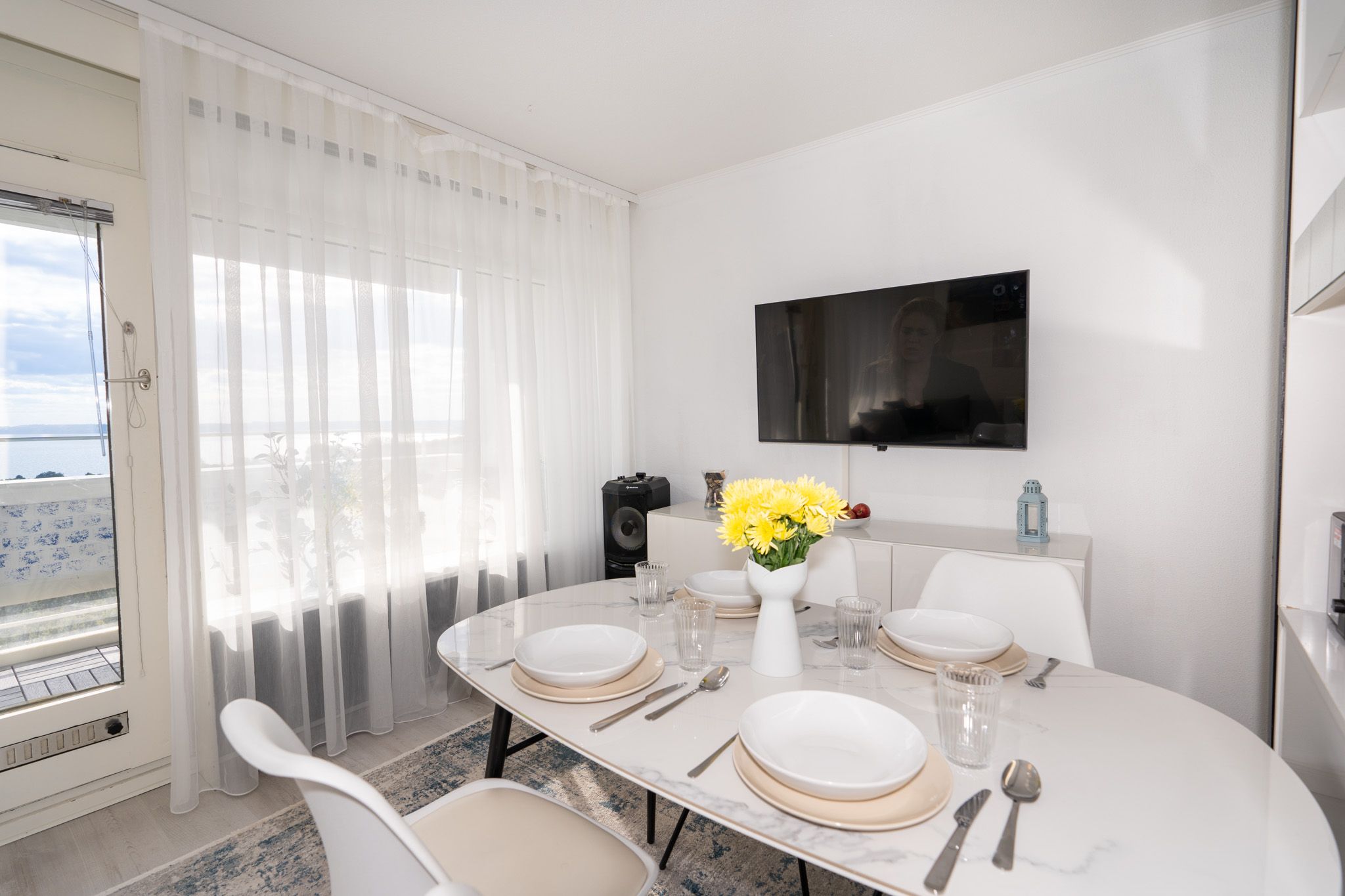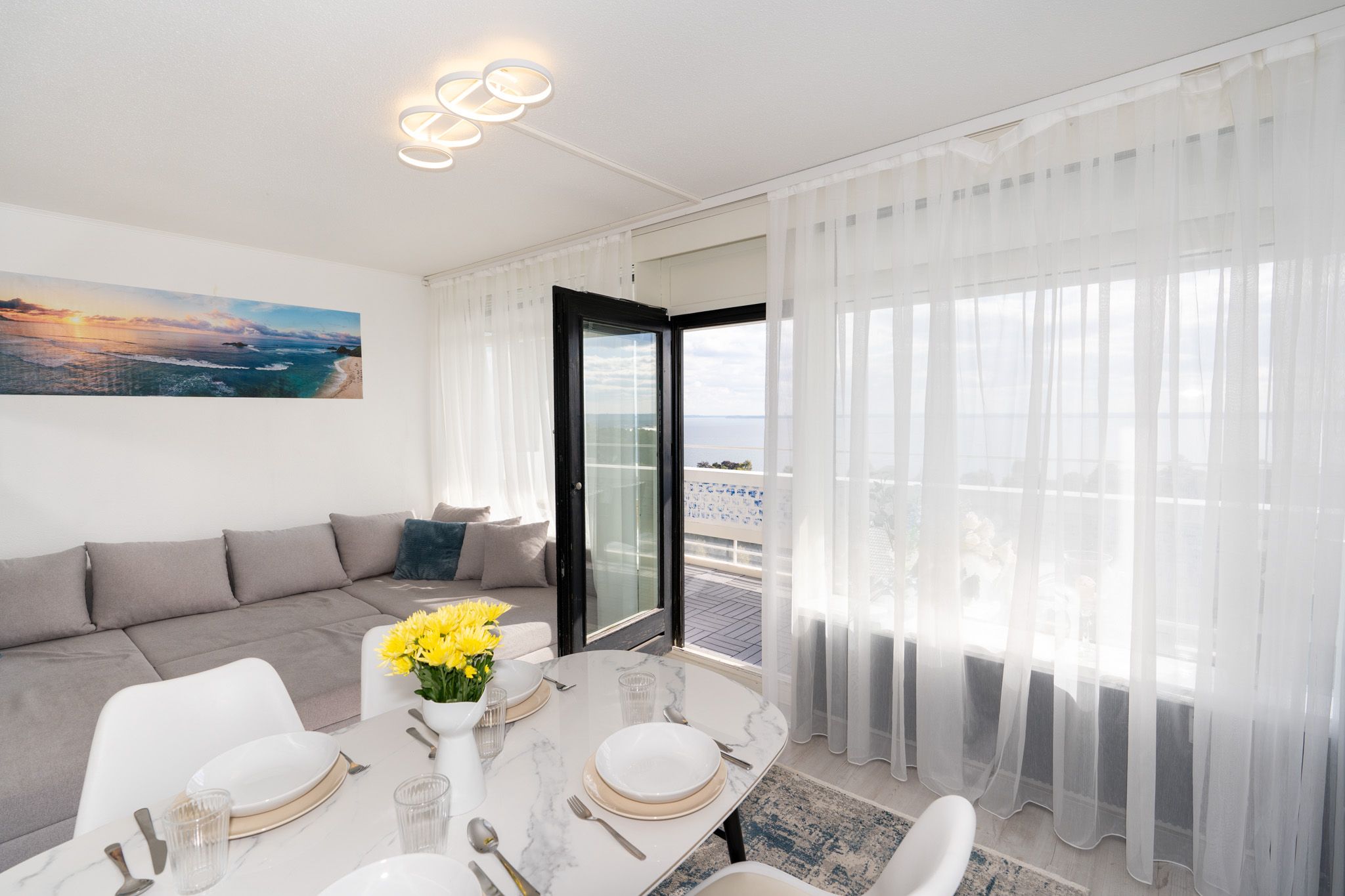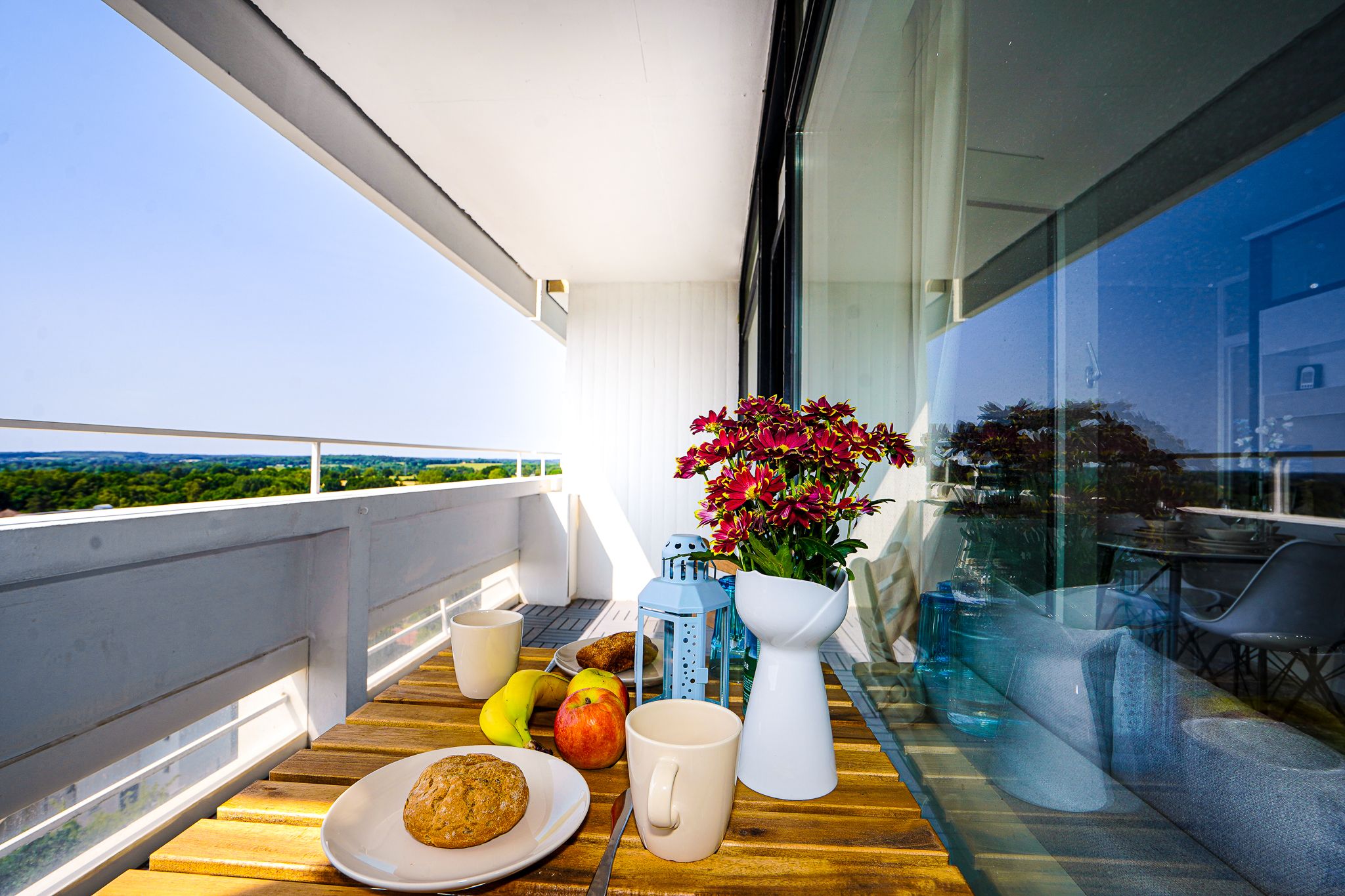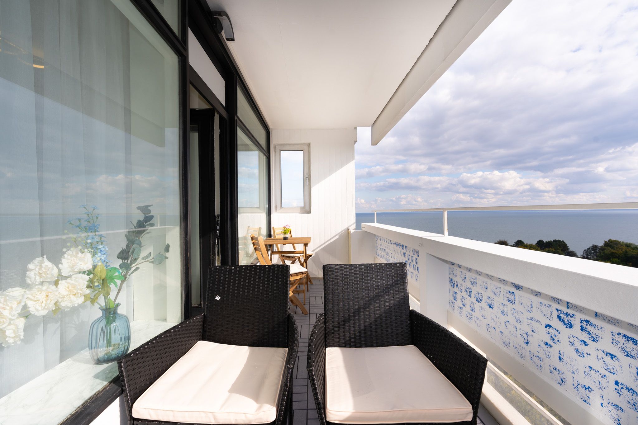 Meerblick-Apartment für zwei, mit Balkon zum Entspannen und Siebträger-Kaffeemaschine für den morgentlichen Kaffeegenuss und weniger als 1 km vom Strand Sierksdorf entfernt. Das Apartment verfügt über ein schönes Schlafzimmer, eine offene Küche mit Kühlschrank und zwei-Plattenherd sowie eine Siebträger-Kaffeemaschine. Ein Bad mit Dusche und einen Balkon mit...