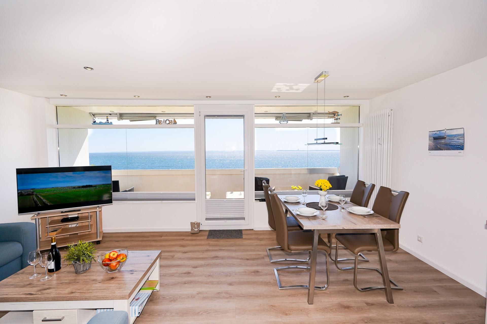 Das kürzlich renovierte Ferienapartment hat eine Wohnfläche von etwa 50 Quadratmetern. Von dem mit wetterfesten Möbeln eingerichteten Balkon und vom Wohnzimmer aus gewährt Ihnen die Wohnung einen Traumblick auf die Ostsee. Die komplett...