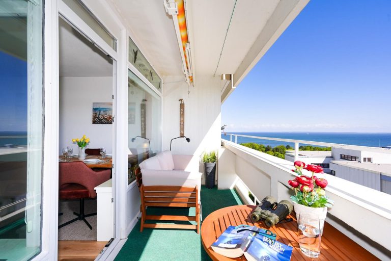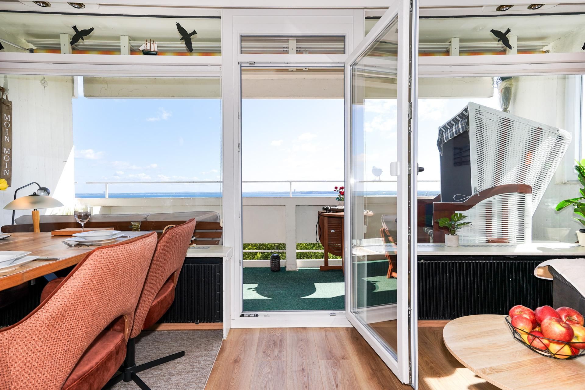 Die Wohnung befindet sich in der 9. Etage und ist bequem über Aufzüge erreichbar. Vom Südbalkon mit Markise genießen Sie einen traumhaften Blick über die Lübecker...