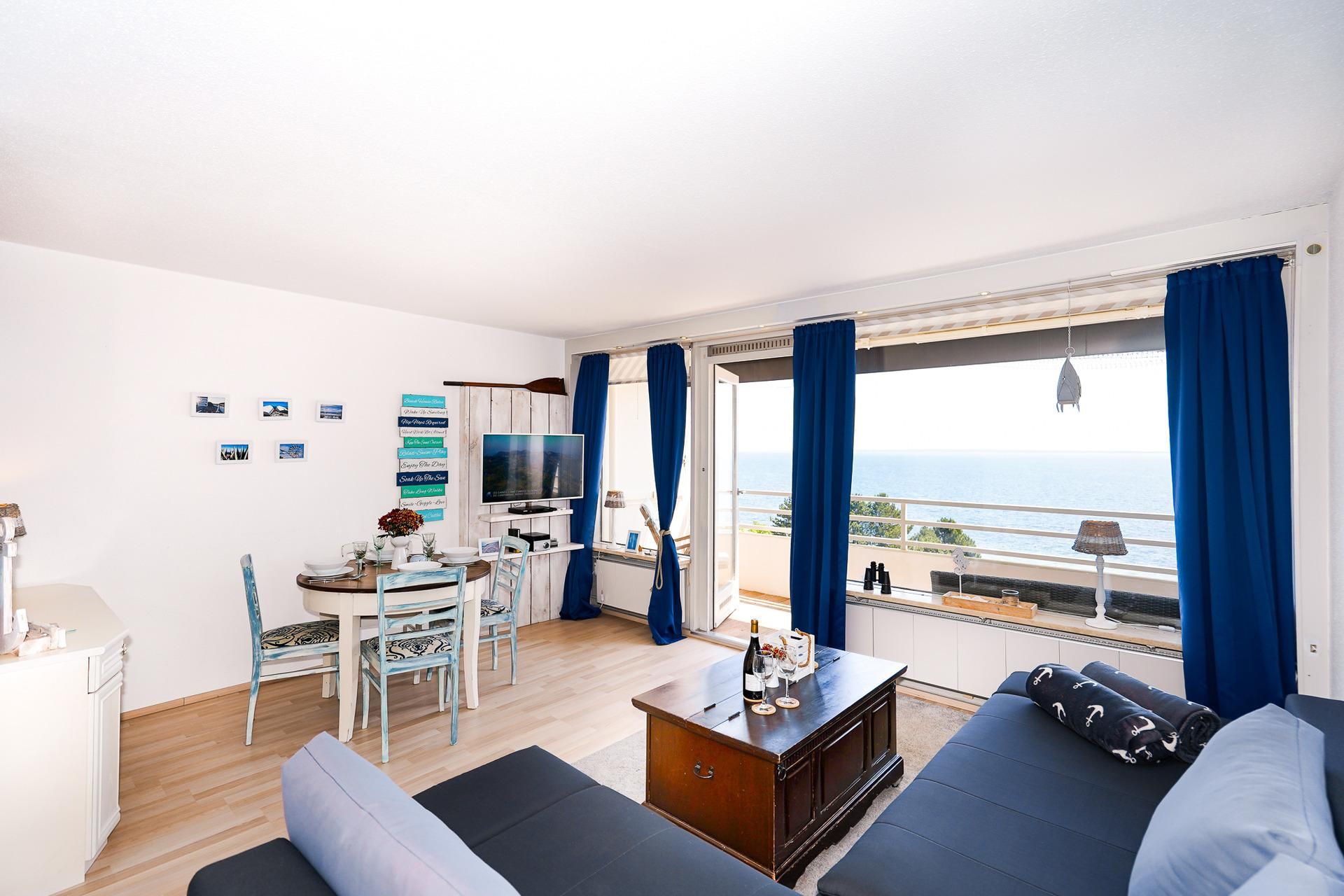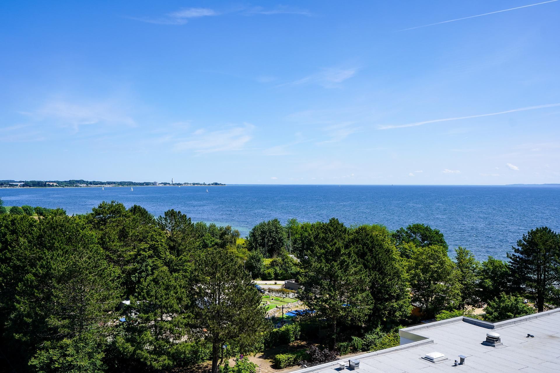 Die im Ferienpark Sierksdorf gelegene Ferienwohnung bietet von der 5. Etage aus einen beeindruckenden Panoramablick über die Lübecker Bucht. Das gemütliche Wohnzimmer ist mit einer zum relaxen...